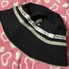 絣のクロッシェ バケットハット 帽子 くるみボタンのブローチ付き 久留米絣