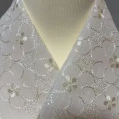 薄いオレンジの花柄刺繍が施された半襟で、上品な印象を与えます。