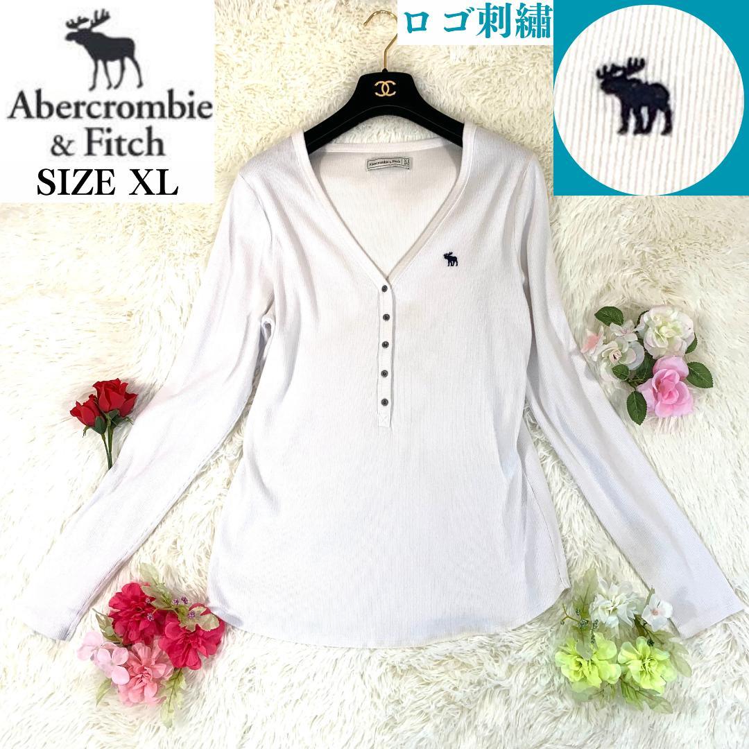Abercrombie & Fitch 長袖 カットソー ロンT Vネック フロントボタン ホワイト SIZE XL