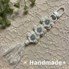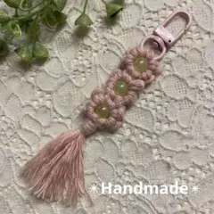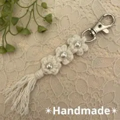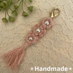 ハンドメイド マクラメ編み パール キーホルダー ストラップ スマホ