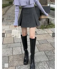 ダイヤチェック柄ツイードフレアミニスカート[mei37]