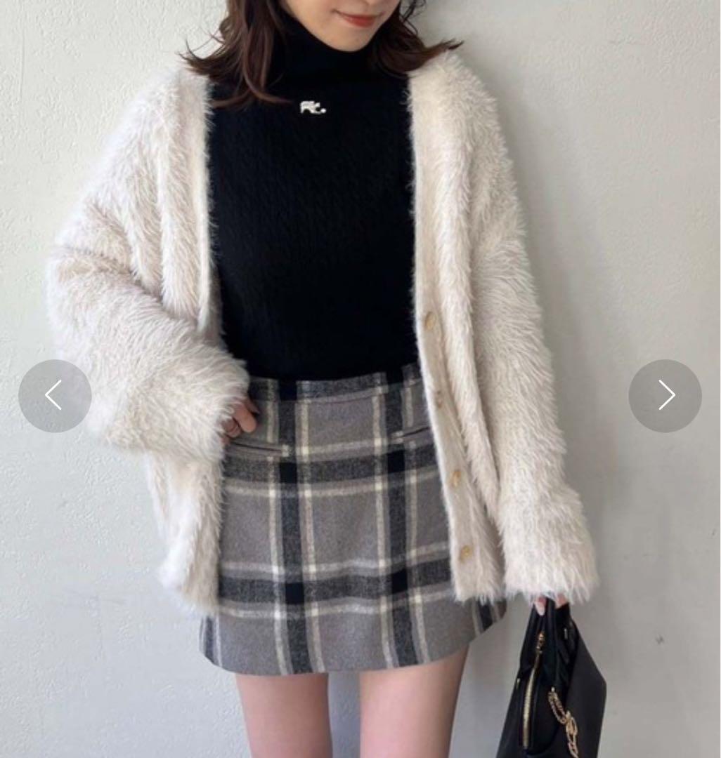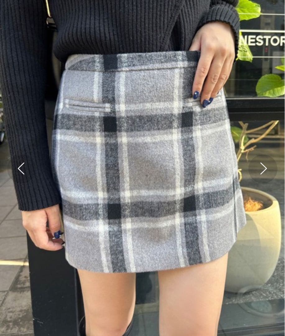NICE CLAUPのシャギーポケットミニスカート、グレーチェックになります。