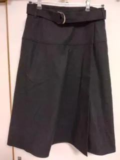 UNIQLOのベージュロングスカート、ボタン付きでフレアシルエット。