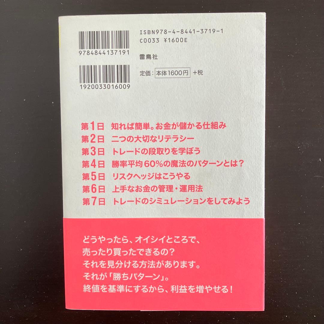1日に何度もチャートを見る必要なし!FXで利益を出す「勝ちパターン」のうち、初心者でもとっつきやすく、もっともリスクが小さく利益を出しやすいものを、ストーリーを交えながら1週間で学べるよう解説する。