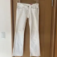 ダークブルーのストレートデニム、フェード加工が特徴。