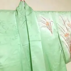 クローバー模様が金糸や銀糸で刺繍がされており、上品な落ち着いたお色のお着物です。