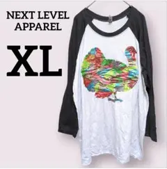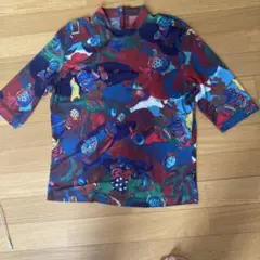 鮮やかなオレンジと青の花柄デザインのXLサイズのトップス