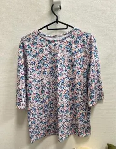 訳あり❣️Vネックトップス 【XL】 花柄 カラフル 七分袖 ウエストリボン