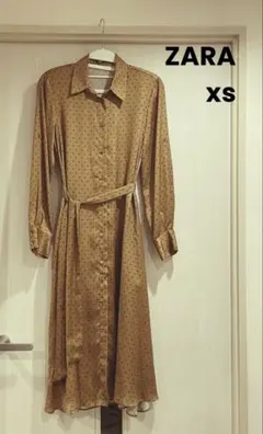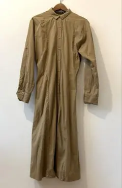 青と白のストライプデザインの長袖シャツワンピース。ボタン開閉で、背中にタックがあり、カフス付きの袖が特徴。
