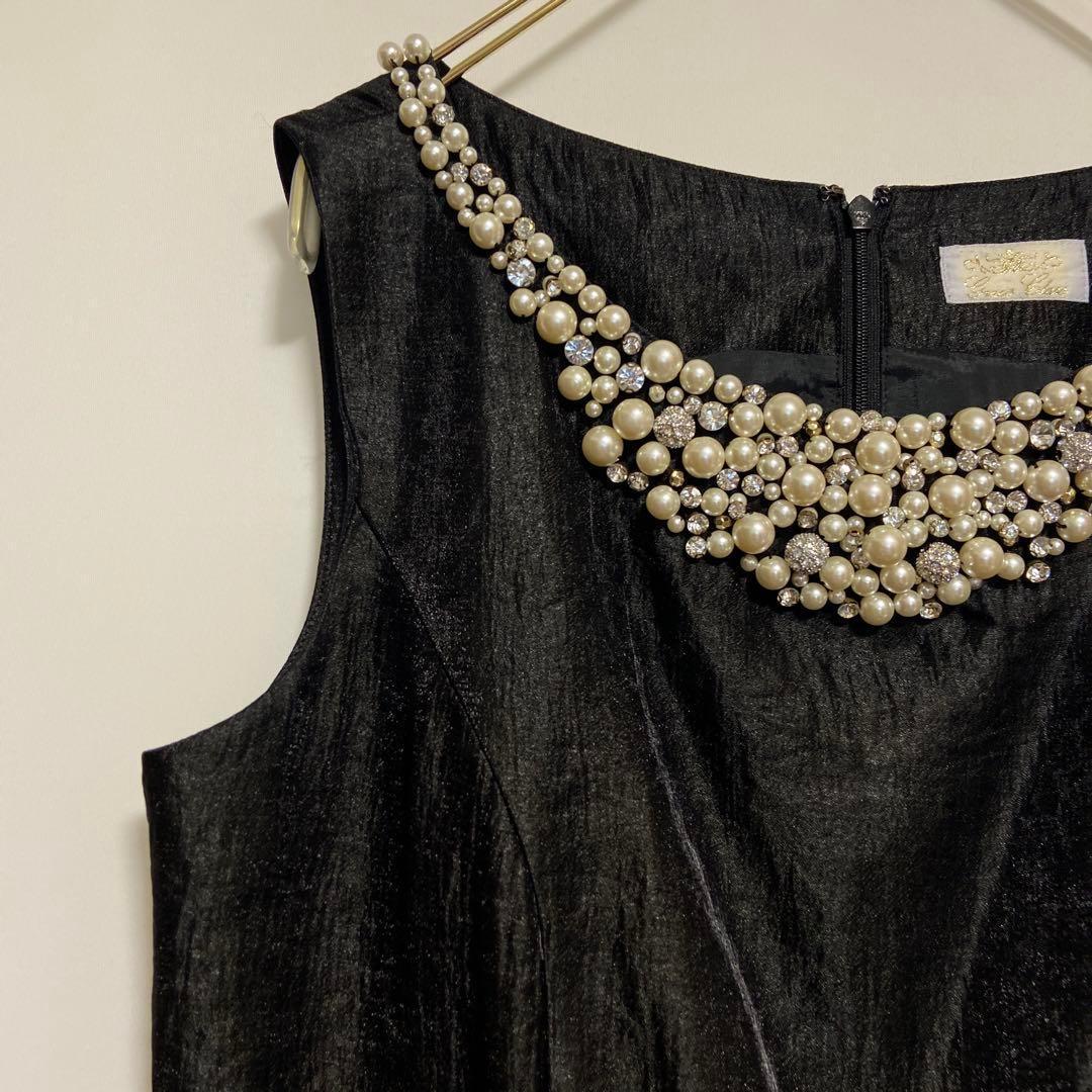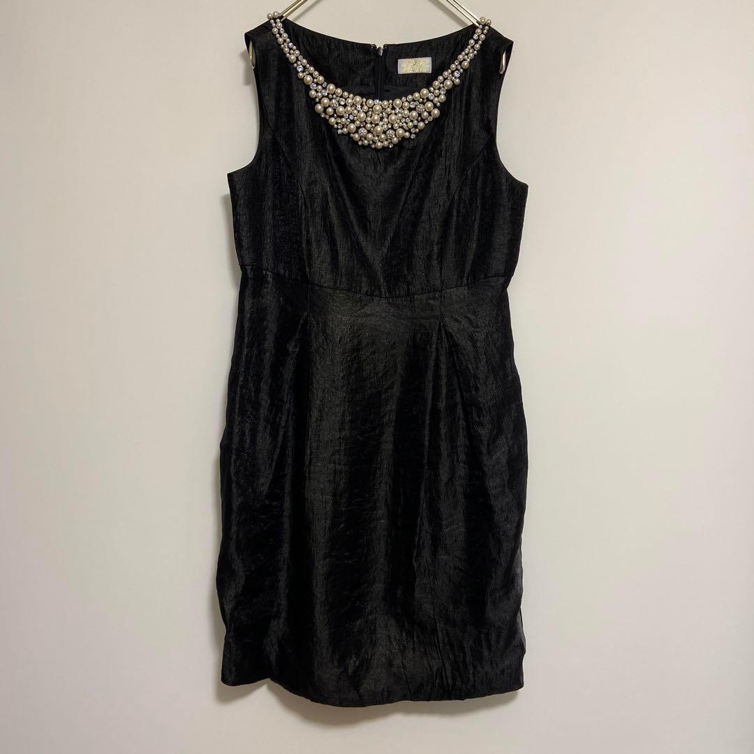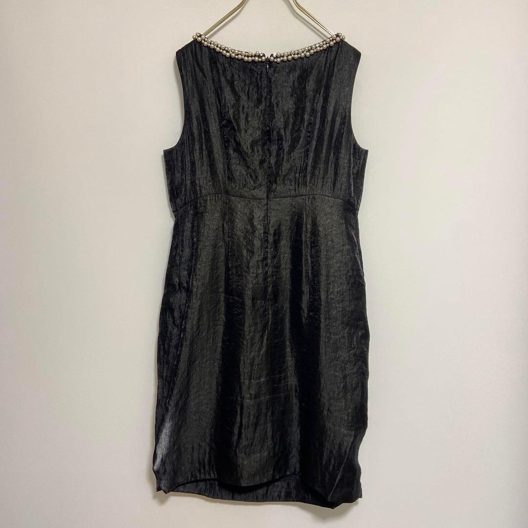 【グレースクラス】ノースリーブドレス ビジュー パールネック 綺麗め ブラック