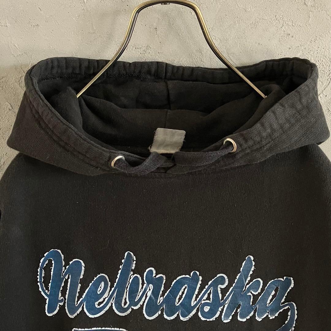 ヴィンテージ 人気カラー パーカー プリントロゴ プルオーバー 黒 L IW10