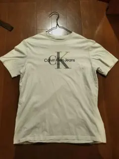 グレーのCALVIN KLEINロゴTシャツ、Mサイズ。