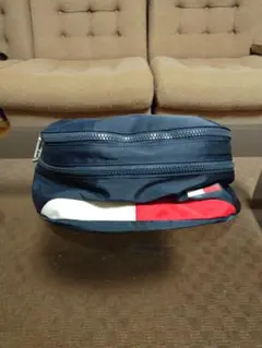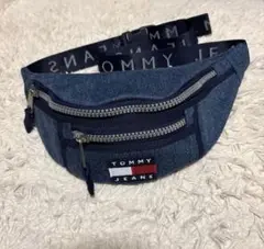ネイビーのTOMMY JEANSボディバッグ、調整可能なストラップ付き。
