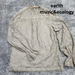 レース付きの長袖シャツ、リラックスフィットのグリーン。