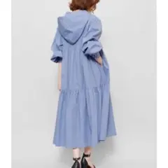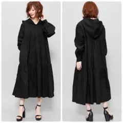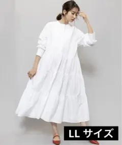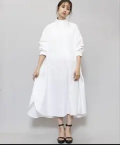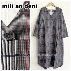 【ミリアンデニ】ロングシャツワンピース ハーフボタン バンドカラー L
