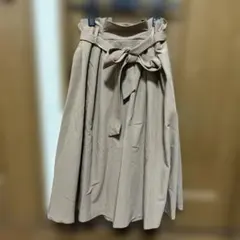ベージュのフレアスカート、コットン100%で快適な着心地。