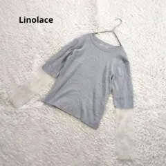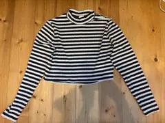 ビーズ装飾が施されたグレーのクロップド長袖トップス。