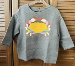 美品【H&M】七分袖 バッグスリットリボンデザイン ちりめんシアーカットソー