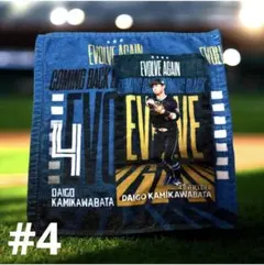 - デザイン: 青色の背景に選手のイラストと文字が描かれたタオル