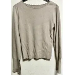 パール装飾が特徴の薄紫のニットセーター、Mサイズ、