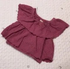 落ち着いた赤レンガ色、サスペンダー風で可愛いデザインの、綿100%の長袖Tシャツです。
