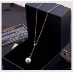 パール風のロングネックレス。
