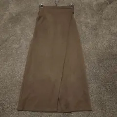 リブ編みのグレーのタイトスカート、シンプルでスタイリッシュなデザイン。