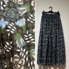 襤褸で縞のしっかり木綿地でのロングスカートです 面白みのあるパッチがポイントです 両脇にポケットあり
