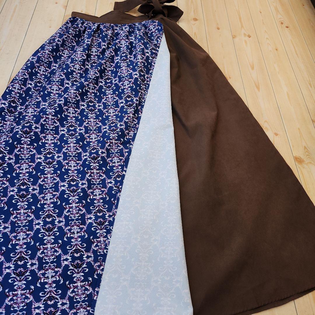 【値下げ】RAY CASSIN 青色柄模様と茶色 ロングスカート