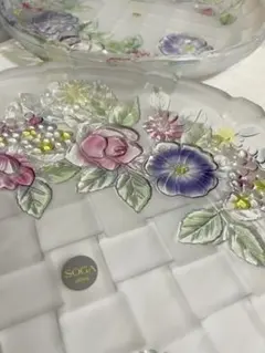 けしの花柄ガラスセット お皿13枚+手持ちフォルダー付き