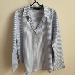 ZARA 青と白のストライプ 長袖シャツ M