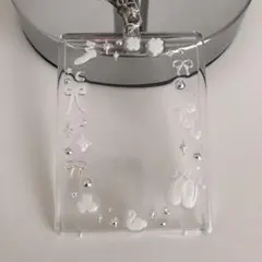 リボン、レース、パーツ等でデコレーションした硬質カードケースです。