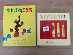 子供向けの楽しい絵本で、ひとまねこざるの冒険が描かれています。
