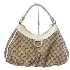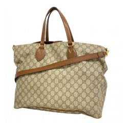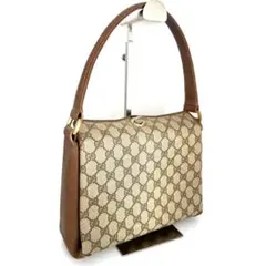 GUCCIのベージュGGパターンハンドバッグ、保存袋付き、内側はブラウン。