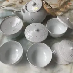 特選有田焼 哲山【中古品】きゅうす湯呑セット 和食器 花柄 梅柄