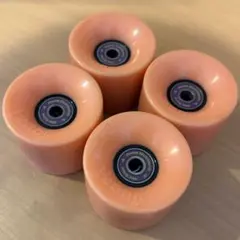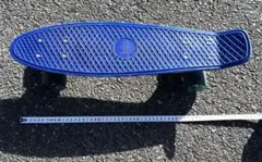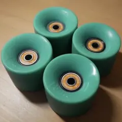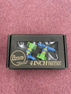 グリーンのPennyスケートボード、オレンジホイール付きでスタイリッシュなデザイン。