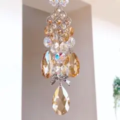 ピンクの菱形ビーズとピンクの丸くカットされたクラックビーズや桜の花のビーズを使って春の雰囲気にしまた。