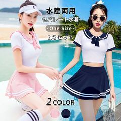レディース 体型カバー 水着 セパレート フリル すらっと脚見せ 水着 S