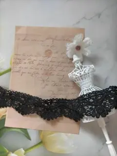 上品なブラックレースに、華やかな花柄が映える美しい生地です。