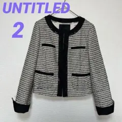 美品 アンタイトル ノーカラー ネイビー ジャケット S フォーマル 通勤 春夏