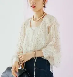 Doux archives シャツ ブラウス 胸元リボン ドット柄 シースルー