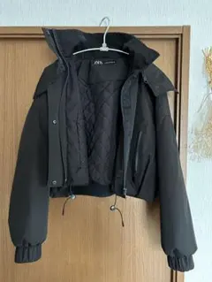 ZARA フェイクレザージャケット ブラックショート丈ダウンジャケット