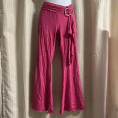 レースとストレッチ素材を使用したブラックのフレアパンツ。サイドのレースディテールが特徴。