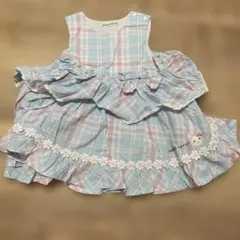 クーラクール 長袖ワンピース うさぎ 80cm ピンク チェック ベビー