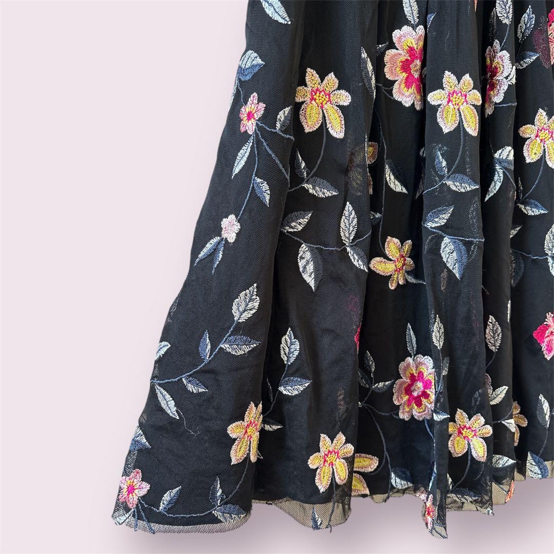 黒地にカラフルな花柄の刺繍が施されたスカート。