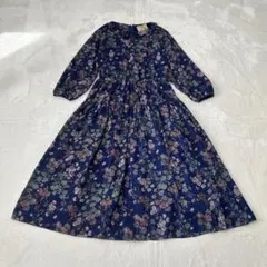 ヴィンテージ ニットワンピース グレー アイボリー ボタニカル柄 冬物 15号