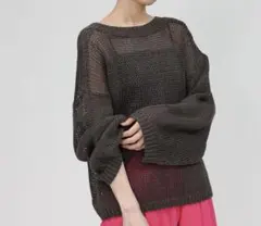美品 BABYLONE モヘヤ混 タートル ニット ゆったり グレー