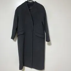 NOBLE ジップアップロングコート ウール ノーカラー グレージュ 36