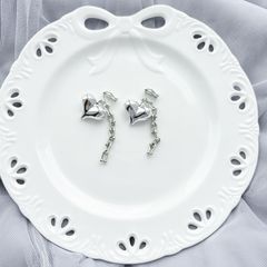ハート型パールビーズとゴールドチェーンのノンホールピアス。