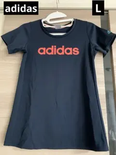 ネイビーのadidas半袖Tシャツ、シンプルで着やすいデザイン。
